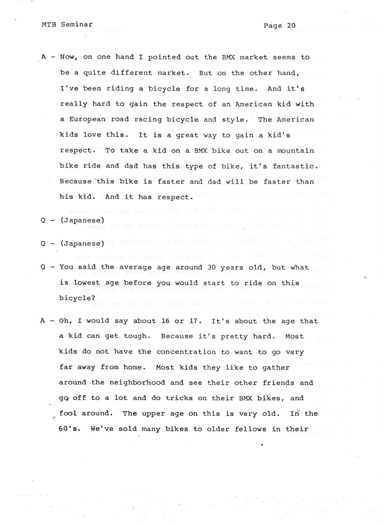 Die frühen Jahre in den USA, aufgezeichnet von Gary Fisher, anläßlich der New York Intl. Bicycle Show im Februar 1983