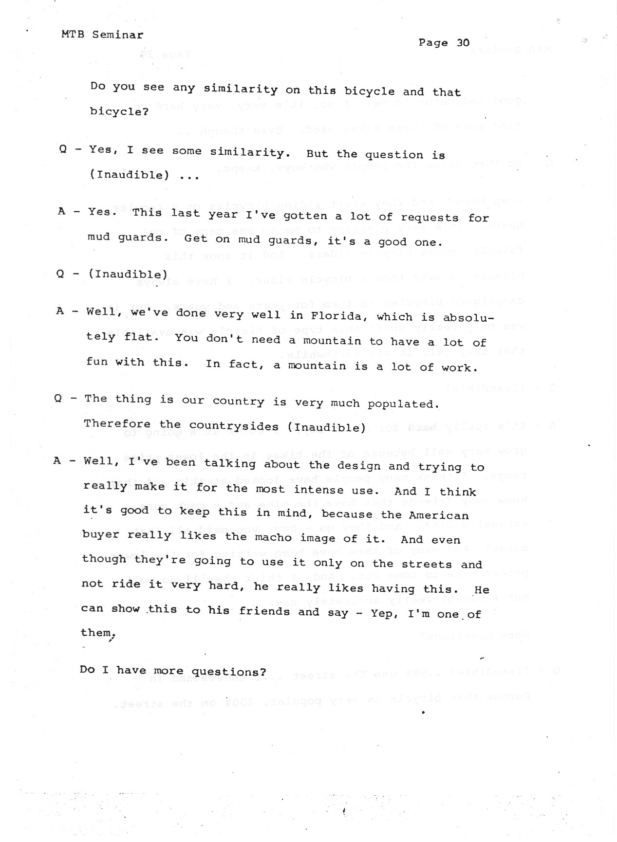 Die frühen Jahre in den USA, aufgezeichnet von Gary Fisher, anläßlich der New York Intl. Bicycle Show im Februar 1983