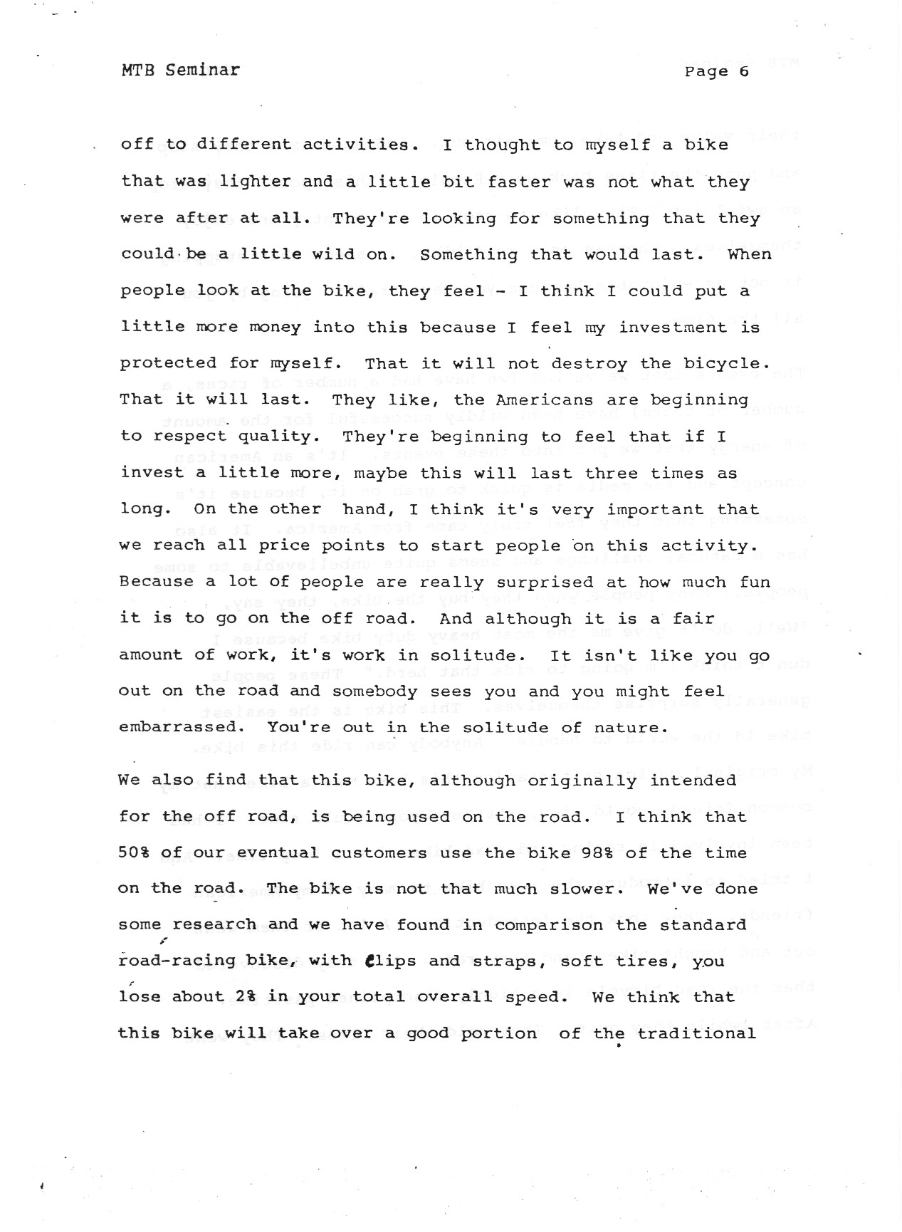 Die frühen Jahre in den USA, aufgezeichnet von Gary Fisher, anläßlich der New York Intl. Bicycle Show im Februar 1983