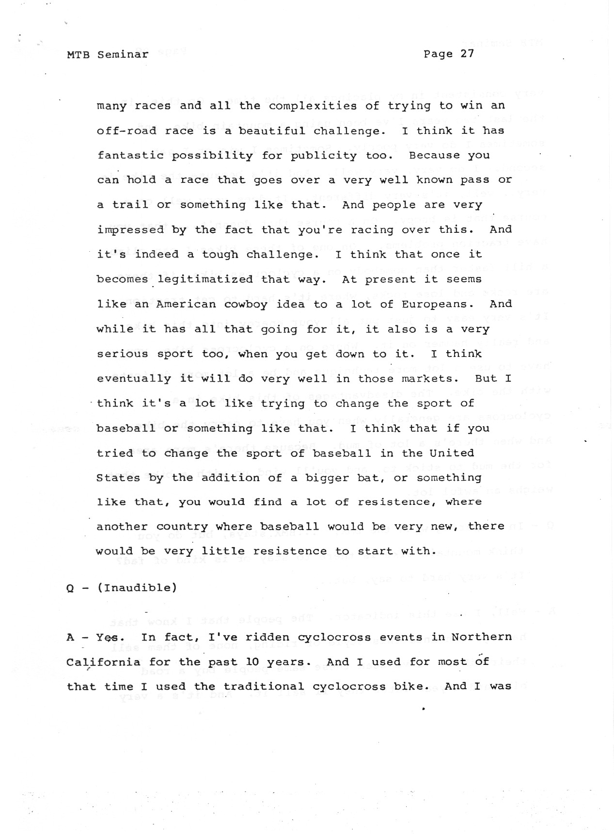 Die frühen Jahre in den USA, aufgezeichnet von Gary Fisher, anläßlich der New York Intl. Bicycle Show im Februar 1983